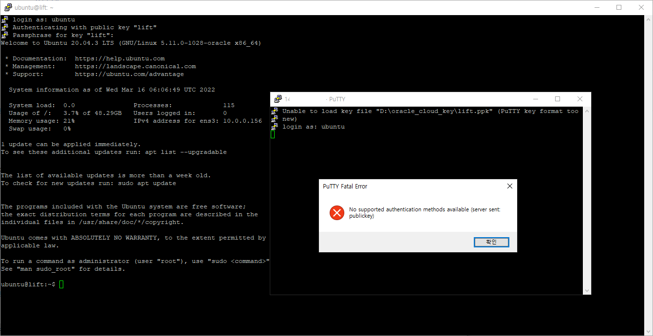 해당버전으로 oracle 무료 인스턴스 ssh로 접근하니 아주 잘 접근이 됩니다.