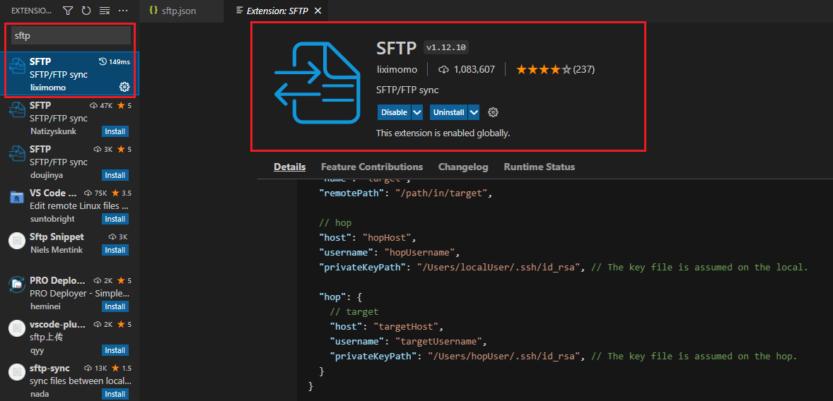 vscode extension 에서 SFTP를 검색하여 설치합니다.