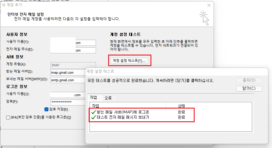 이렇게 계정 설정테스트 까지 완료가 된다면 정상적으로 설정된것입니다.