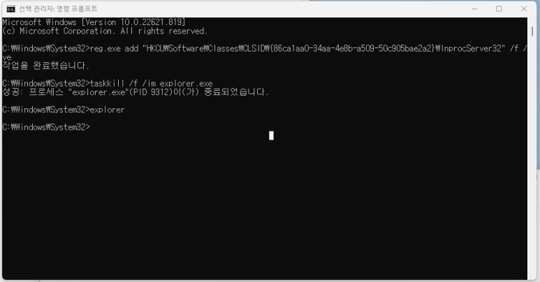 윈도우11로 업그레이드 후 불편한 것 중 하나,