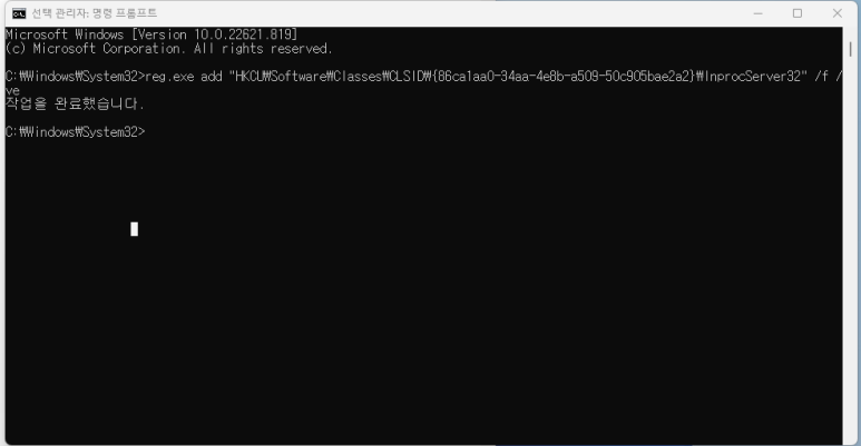 "작업을 완료했습니다" 라고 출력되면 성공된 것 입니다.
