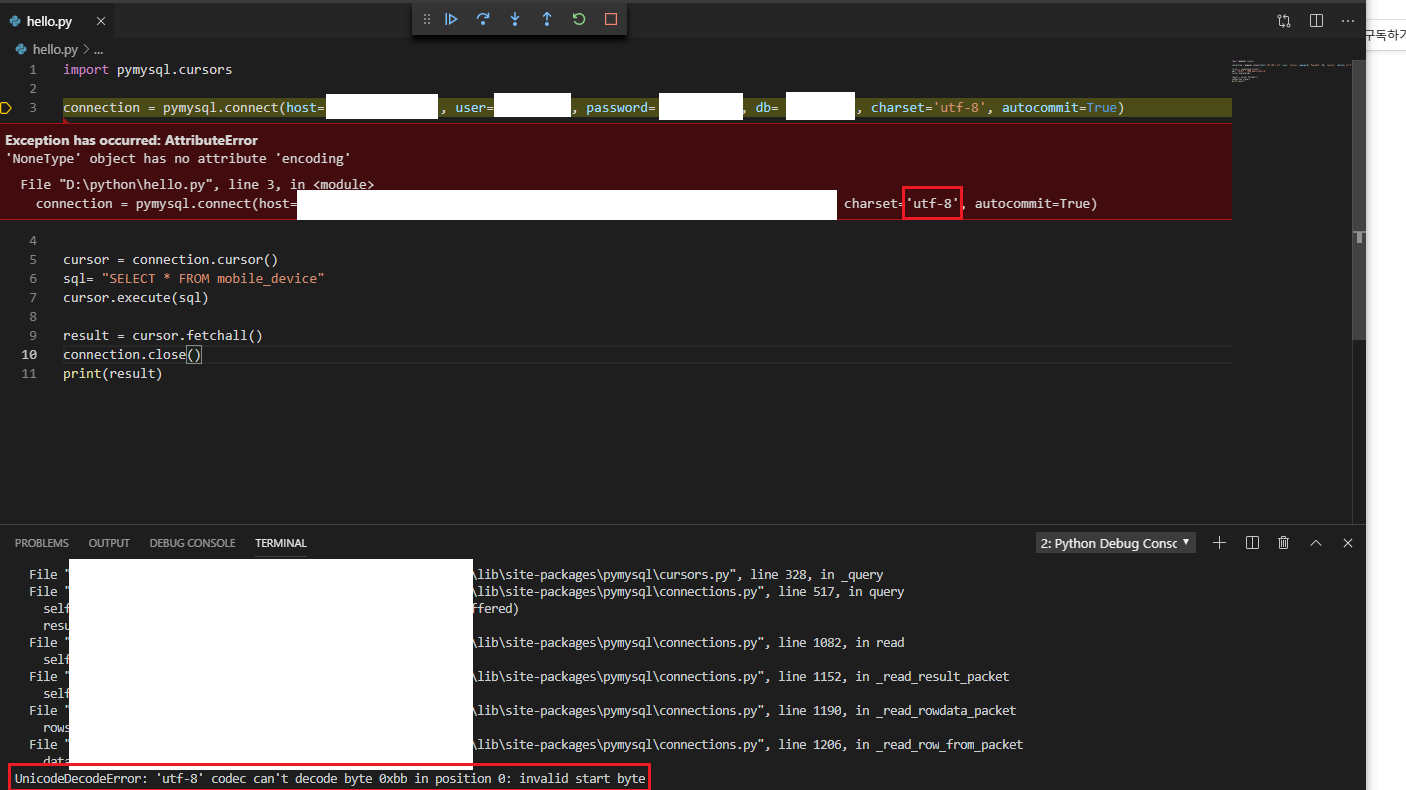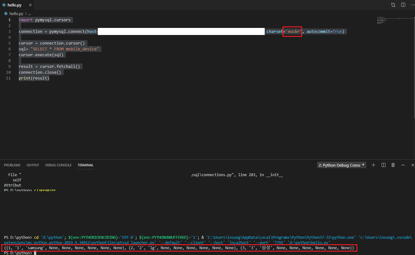 3.sql 연결정보에서 euc-kr을 입력하면 안됩니다.