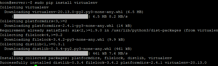 3.sudo pip install virtualenv 파이썬 가상환경 설치