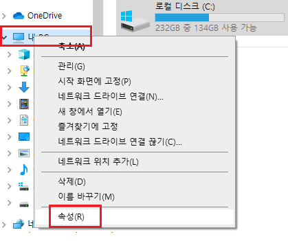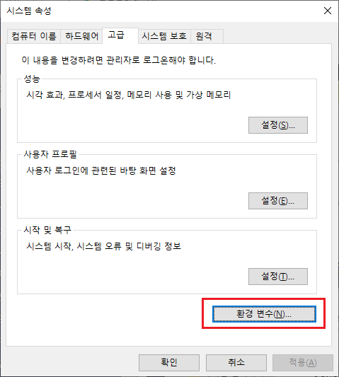 고급탭 > 환경변수 클릭